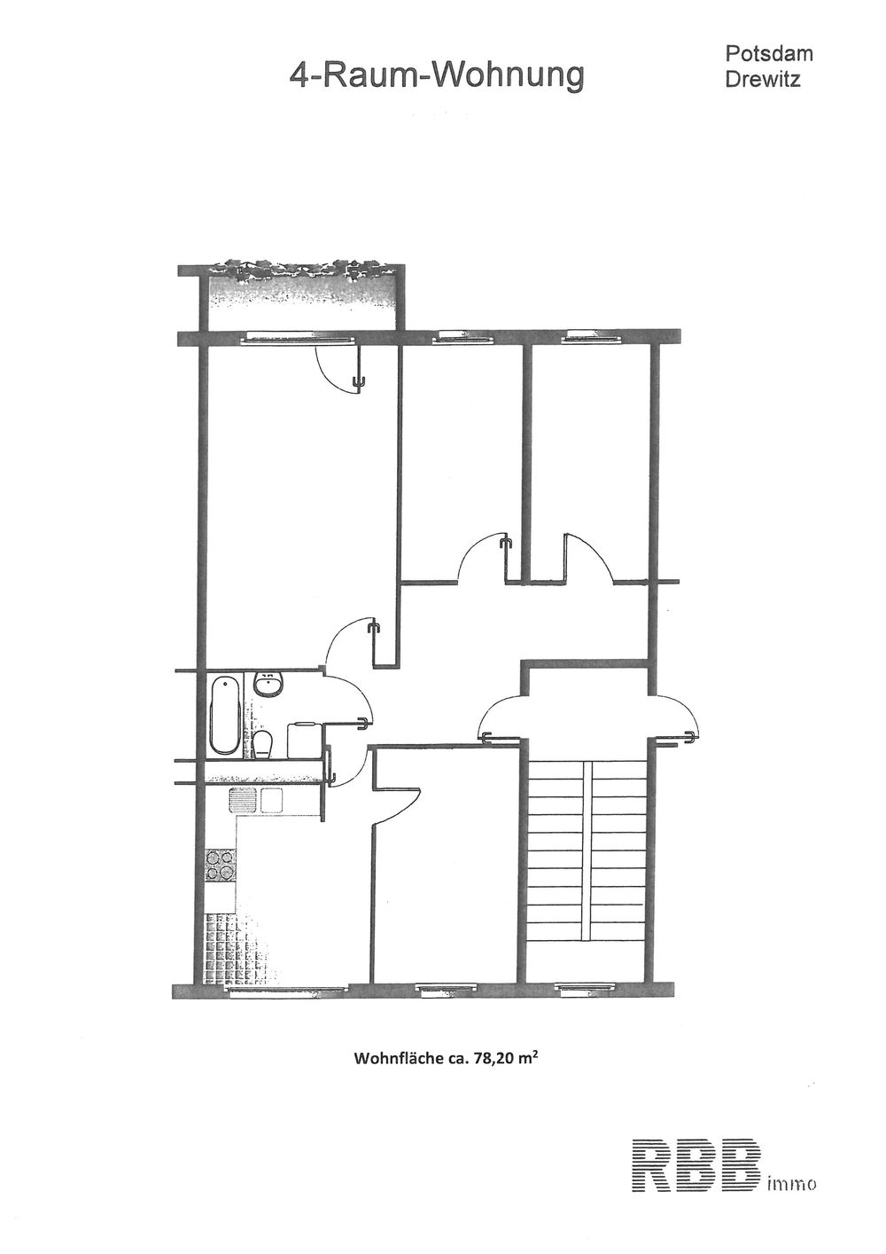 Drewitz, Erich-Pommer-Straße 18, 4-Zimmer mit ca. 78,20 m² und Balkon
