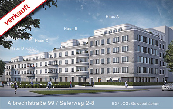 Im Herzen von Steglitz, nahe dem Rathaus entsteht ein attraktiver Neubau mit 2 bis 5 Zimmer-Wohnungen und Gewerbeflächen
