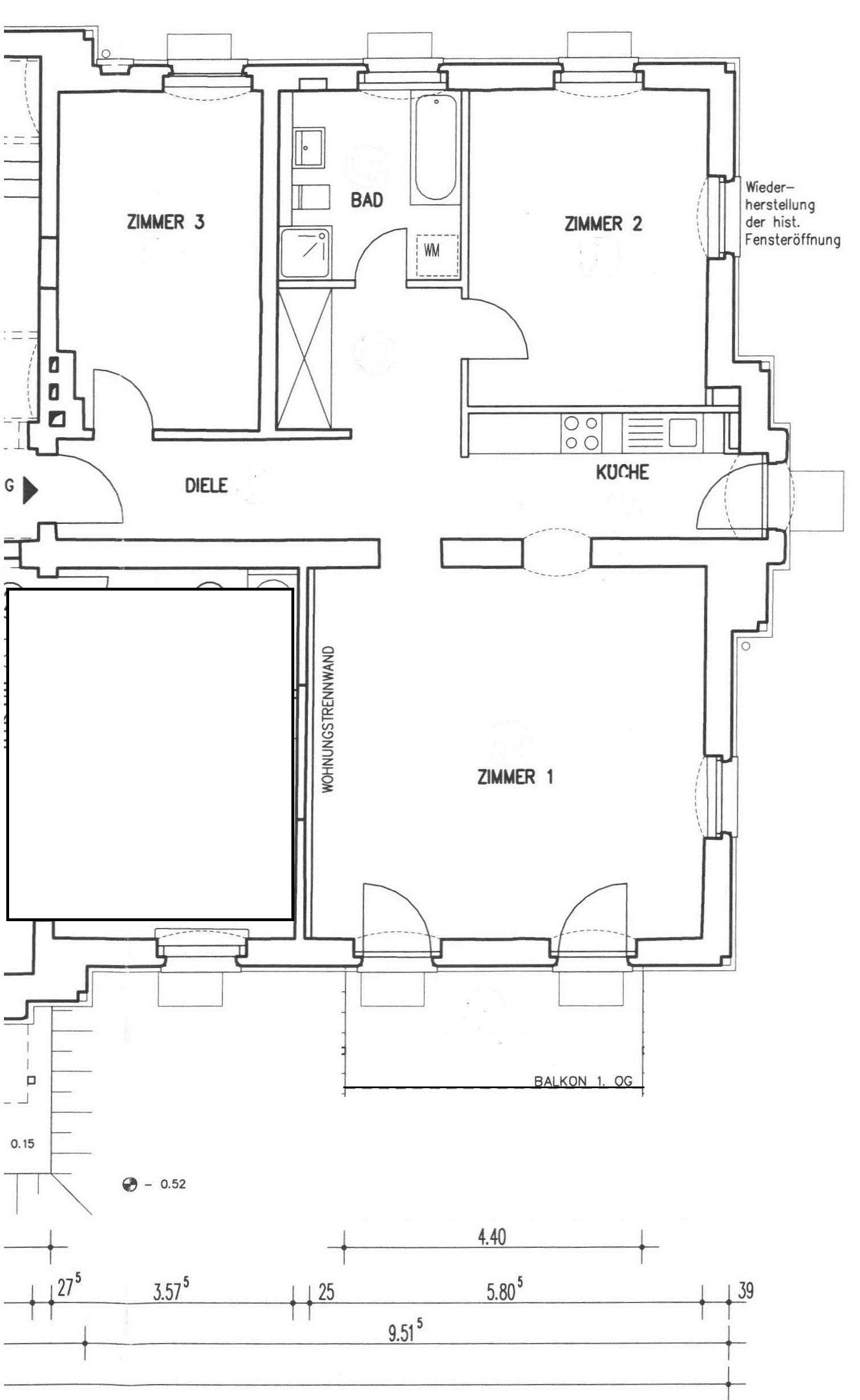 Etage: 1. OG; Baujahr 1935, Umbau zu Wohnungen 2009