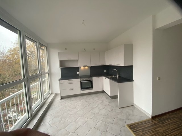 Ruhig gelegene 2-Zimmer-Wohnung im DG mit Dachterrasse und moderner Einbauküche. Großer Wohnraum mit offener Küche und Zugang zur Dachterrasse, Schlafzimmer, Wannen-Bad.